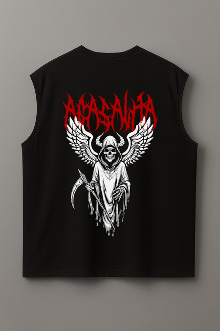 Estampa exclusiva “Doomwing” (DTF de alta definição): anjo da desgraça com uma gadanha espanta até sua ex — atitude, confronto e renascimento.